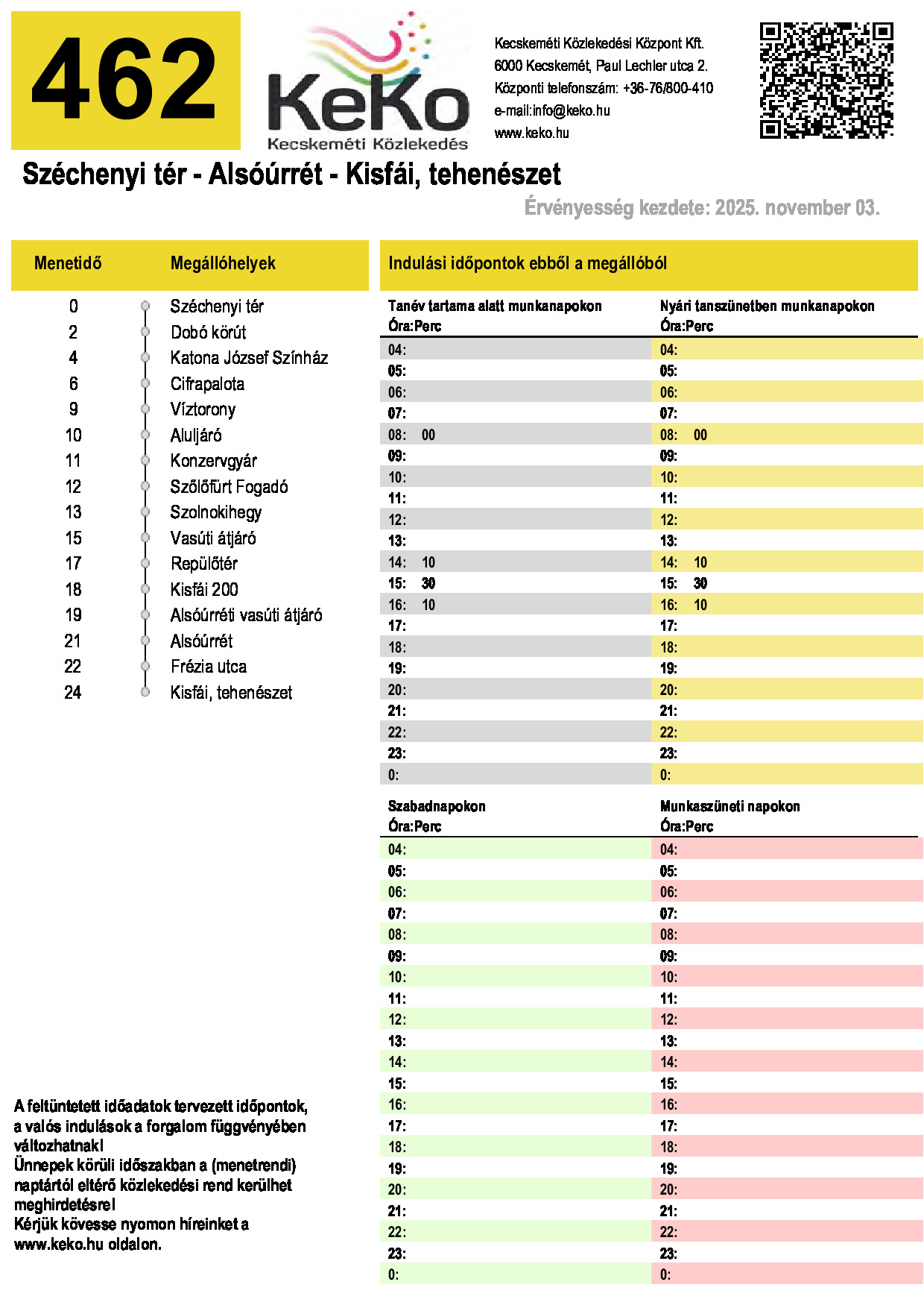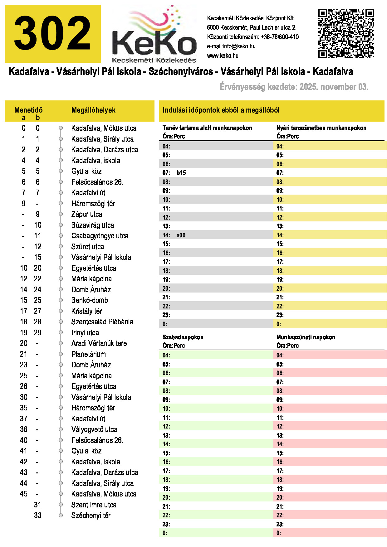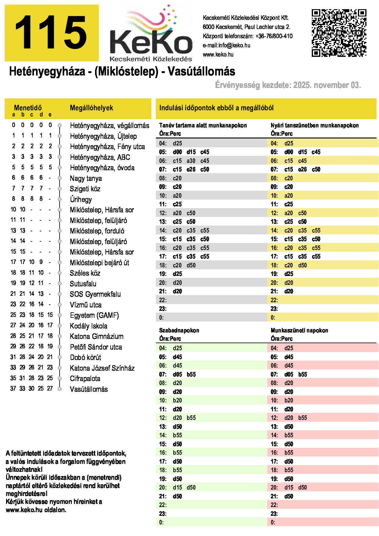 A Kecskeméti Közlekedési Központ Kft. tájékoztatja a Tisztelt Utazóközönséget, hogy Kecskemét Megyei Jogú Város közigazgatási határán belül közlekedő menetrend szerinti helyi autóbuszjáratok tekintetében az alábbi menetrendi változások kerülnek érvényesítésre 2025. november 3-tól (hétfőtől).