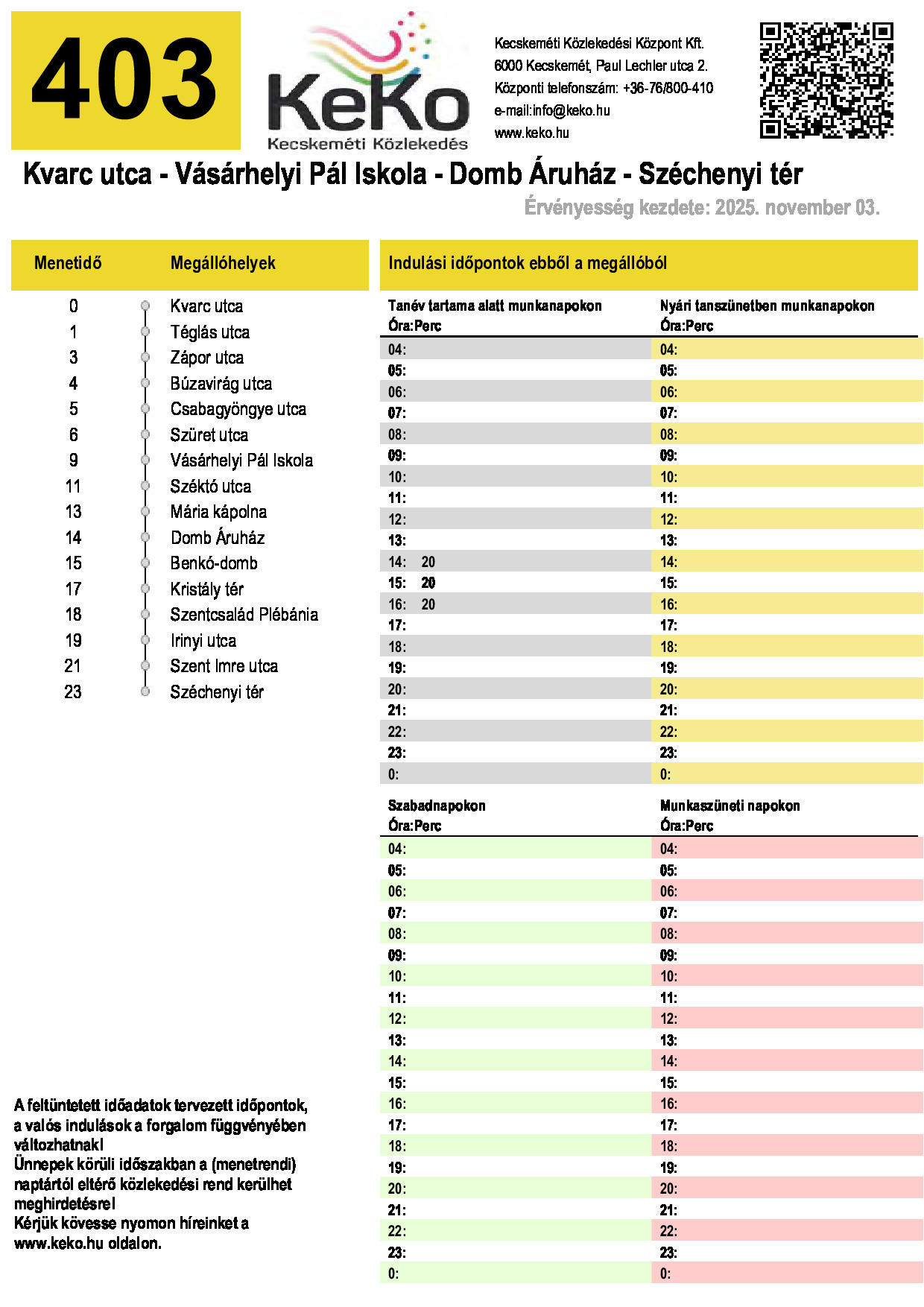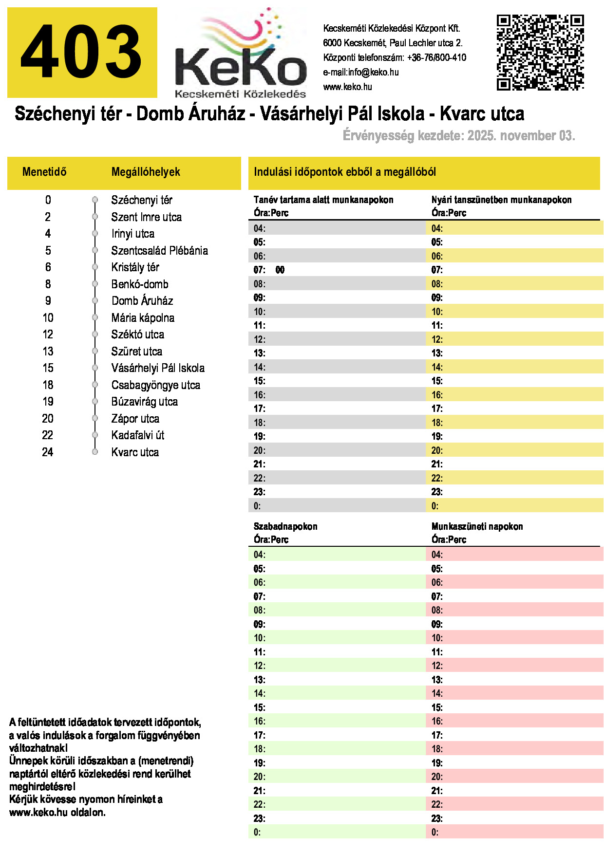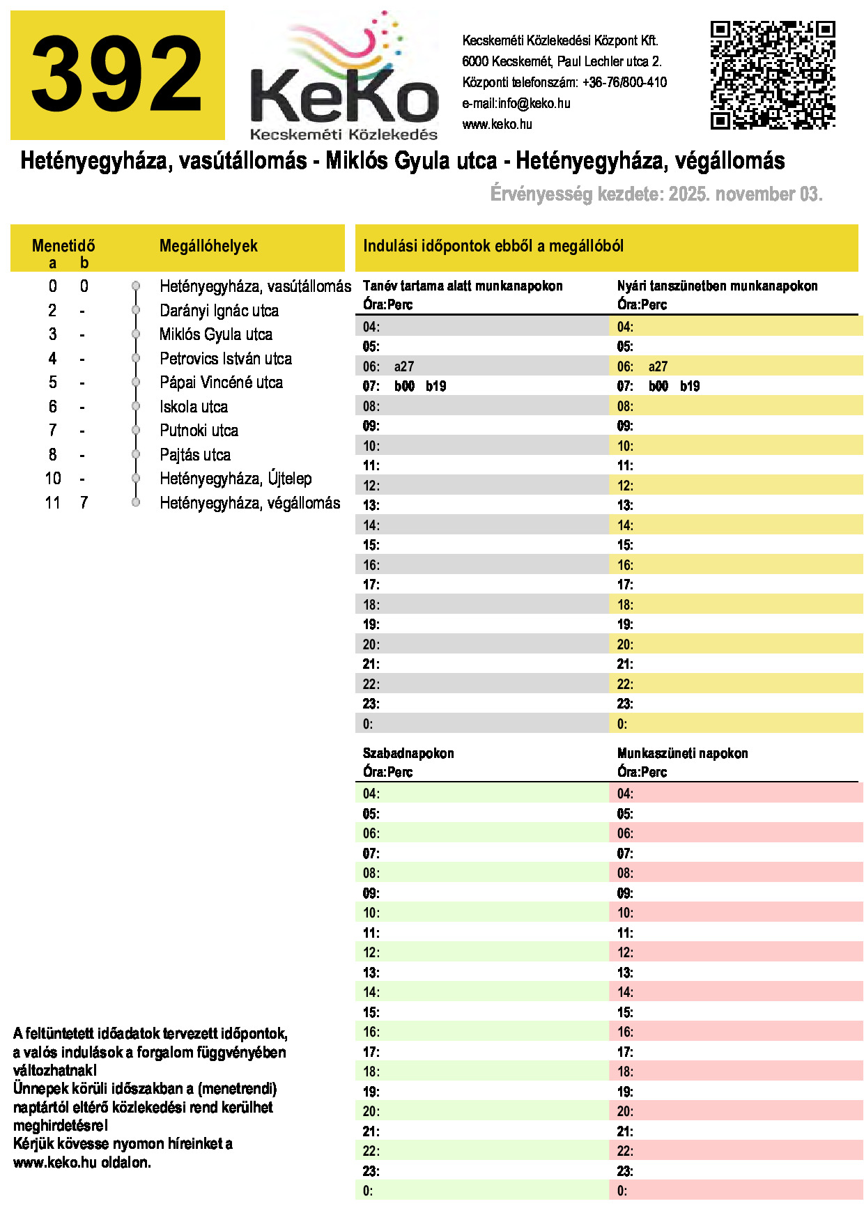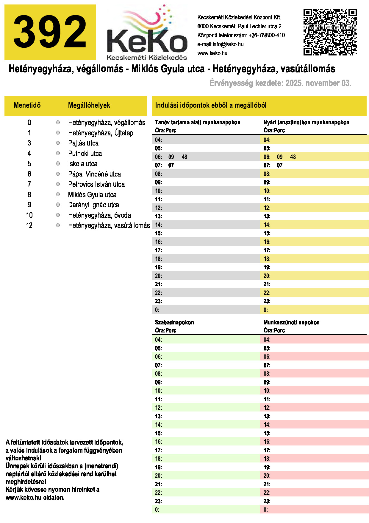 A Kecskeméti Közlekedési Központ Kft. tájékoztatja a Tisztelt Utazóközönséget, hogy Kecskemét Megyei Jogú Város közigazgatási határán belül közlekedő menetrend szerinti helyi autóbuszjáratok tekintetében az alábbi menetrendi változások kerülnek érvényesítésre 2025. november 3-tól (hétfőtől).